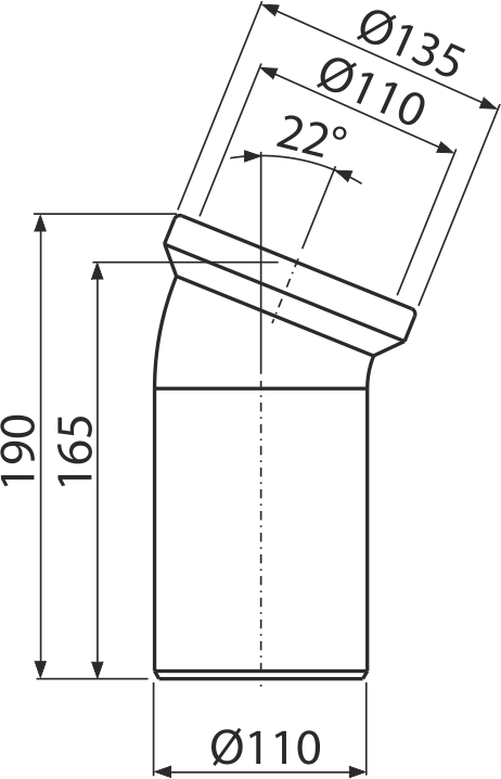 Raccordement pour WC posé au sol, coude 22°, DN 110, longueur 165 mm, PP, blanc