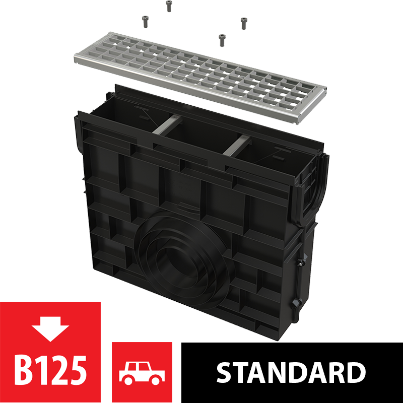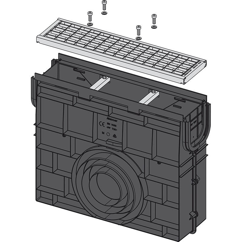 Siphon d’extérieur caniveau pour AVZ102 avec cadre plastique et grille galvanisée B125