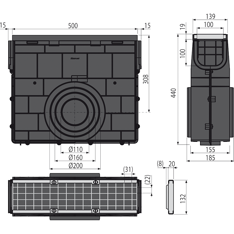- Corps du siphon d’extérieur caniveau