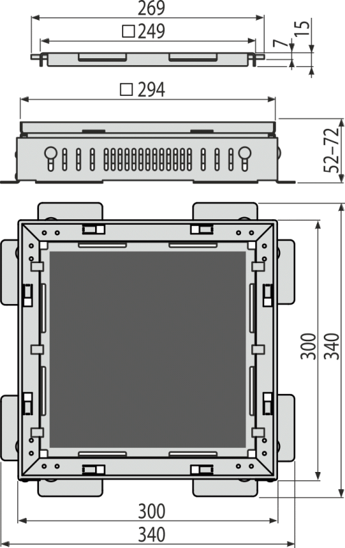 Rallonge de prise de siphon + Grille à carreler pour canniveau de douche 300×300, inox galvanisé