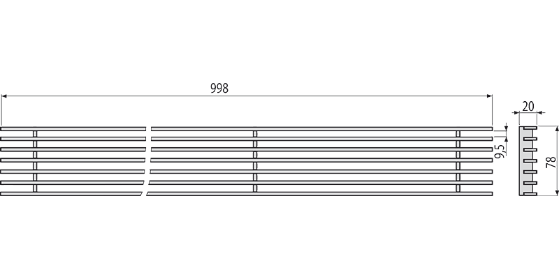 • Matériau de la grille : acier inoxydable AISI 304, DIN 1.4301