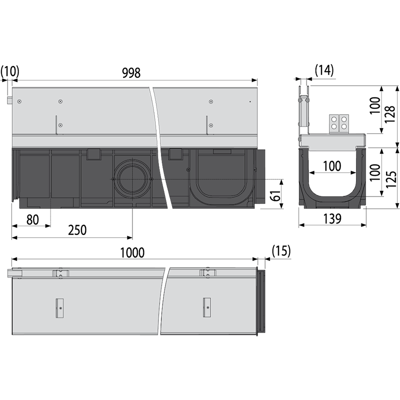 AVZ101Outdoor drain channel 100 mm without frame