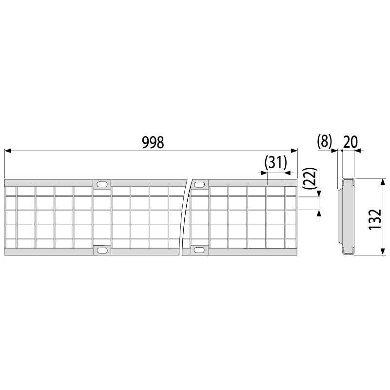 - Caillebotis galvanisé - fixé dans le caniveau par quatre vis en acier inoxydable, dimensions de maille 22 × 31 mm