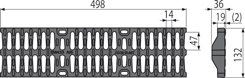 AVZ104-R401Caniveau d’extérieur 100 mm avec cadre plastique et grille en fonte A15