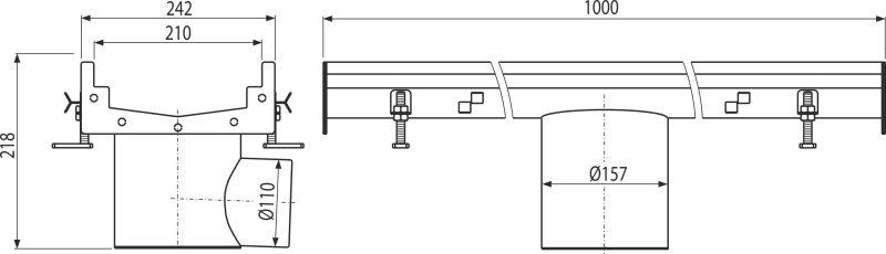 • Tout le système est solidement ancré dans le béton via les pieds facilement réglables et ancrages latéraux