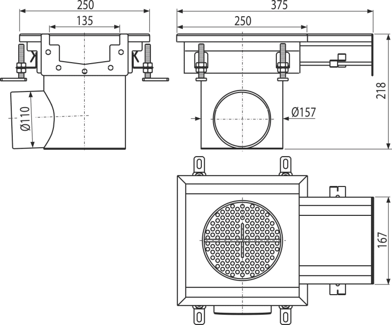 Siphon de sol box industriel terminal 250×250-135, inox AISI 316L