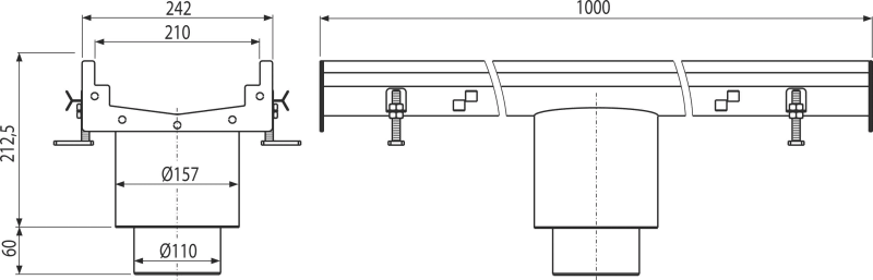 • Matériau du siphon : acier inoxydable 1,5 mm, DIN 1.4301