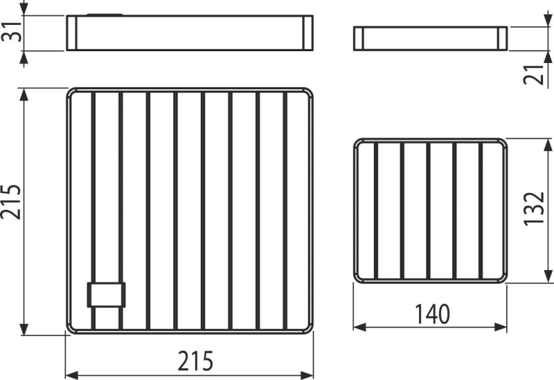 • Dimensions des grilles 215 × 215 mm, 132 × 140 mm
