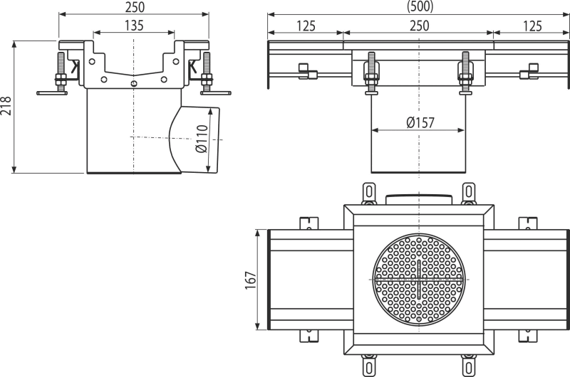 Siphon de sol box industriel intermédiaire 250×250-135, inox AISI 304