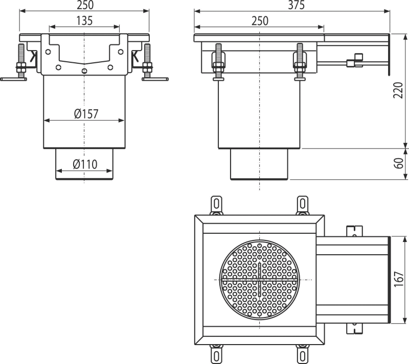 - Ancrage solide dans le béton via les pieds facilement réglables et ancrages latéraux