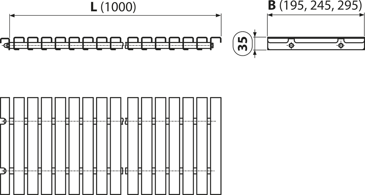 - Hauteur de pose dans le caniveau 35 mm