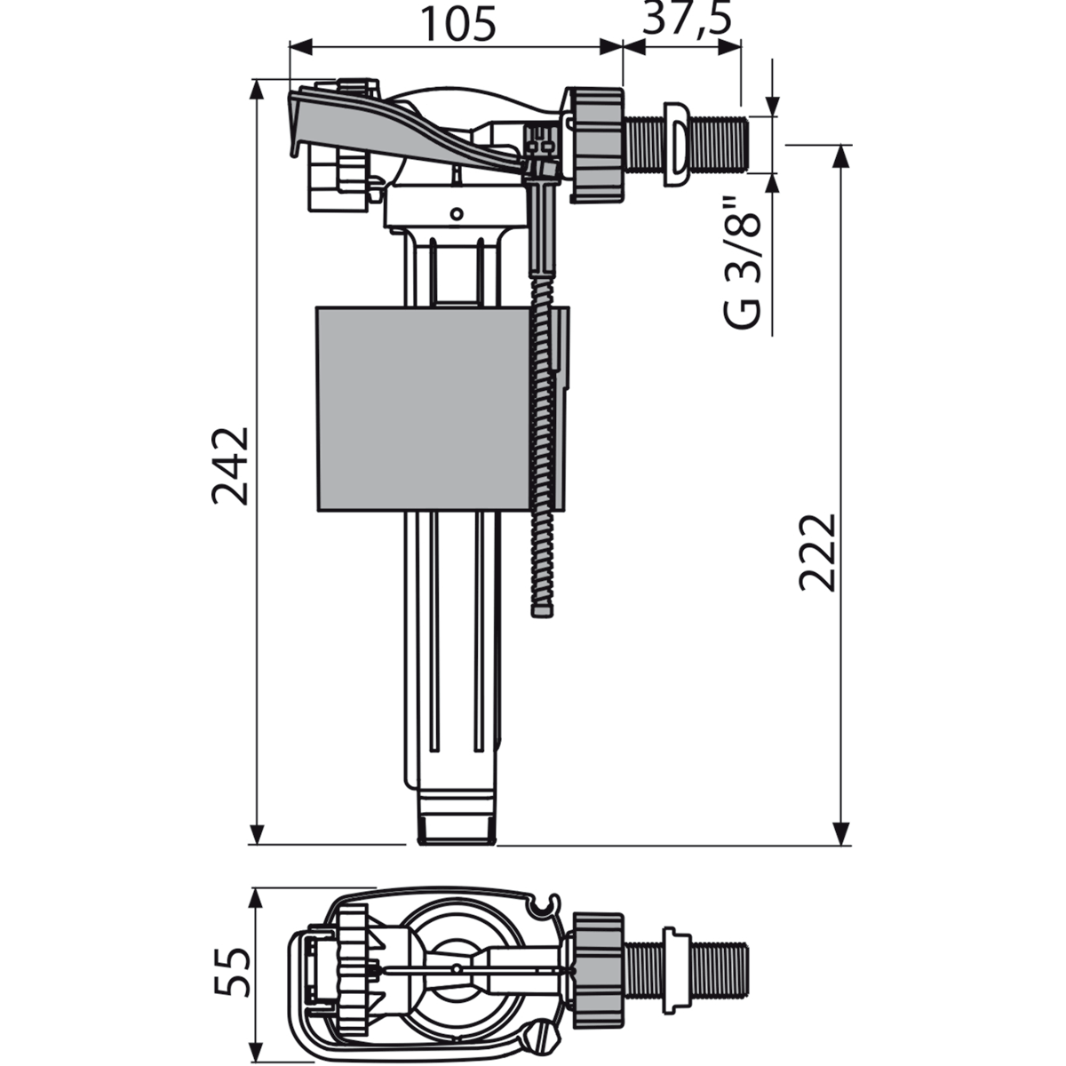 Robinet flotteur latérale filetage métallique pour réservoirs céramiques