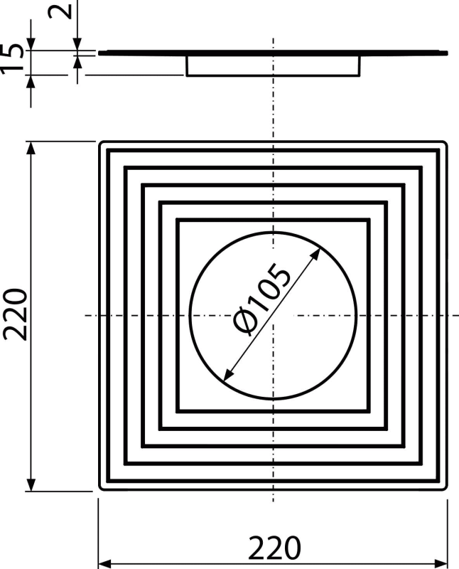 | APV2324-IZ | Floor drain 105×105/50/75 mm straight outlet, stainless steel grid, stainless steel flange and collar-2nd level insulation, combined odour trap SMART |