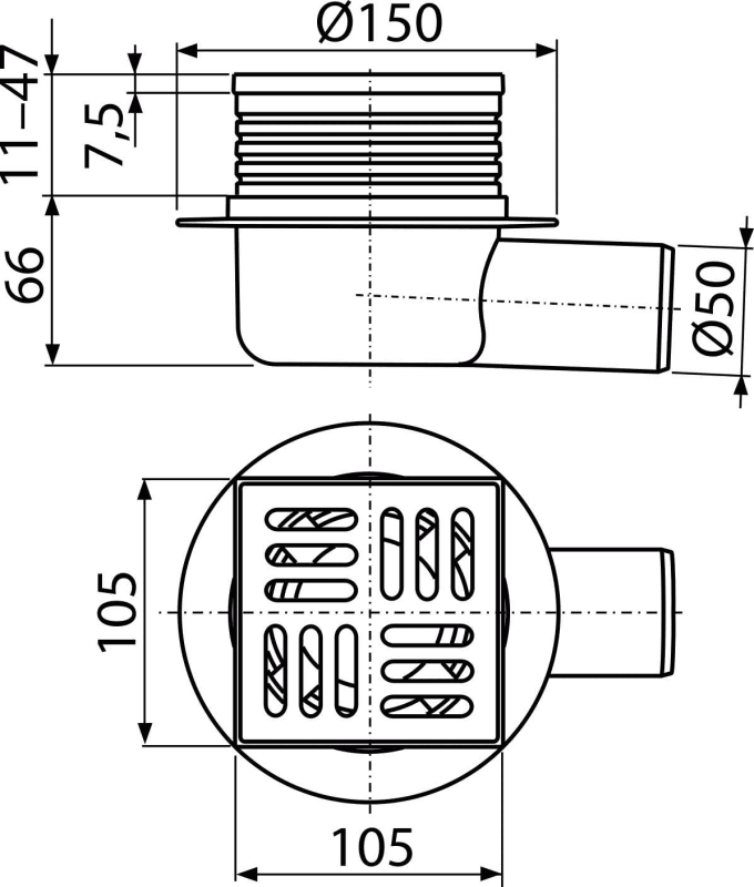 • Prise de siphon 105×105 mm