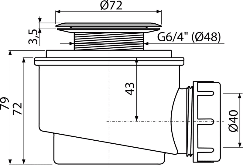 Siphon de douche, dimensions du trou d'installation 50 mm, DN 40, grille Ø 72 mm, métal, inox-brillant
