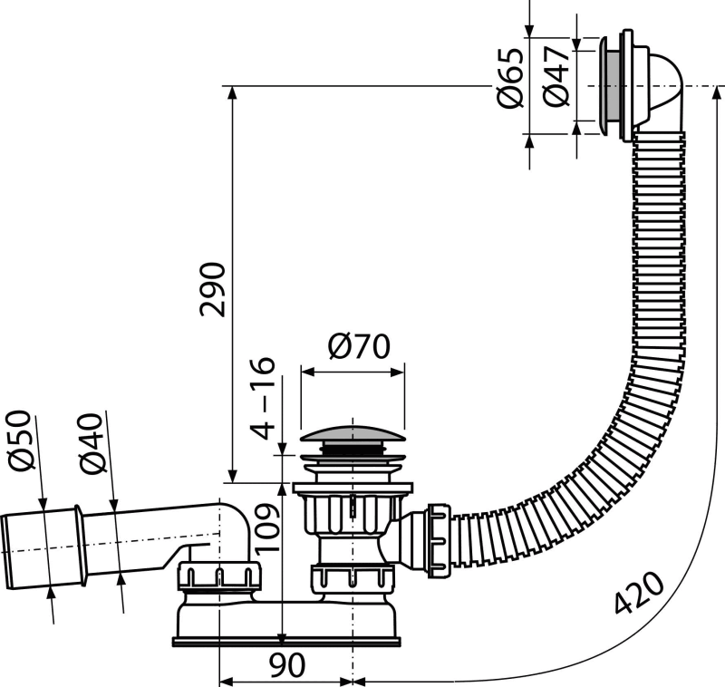 | S1425A-ND | Bathtub outlet CLICK/CLACK 6/4" |