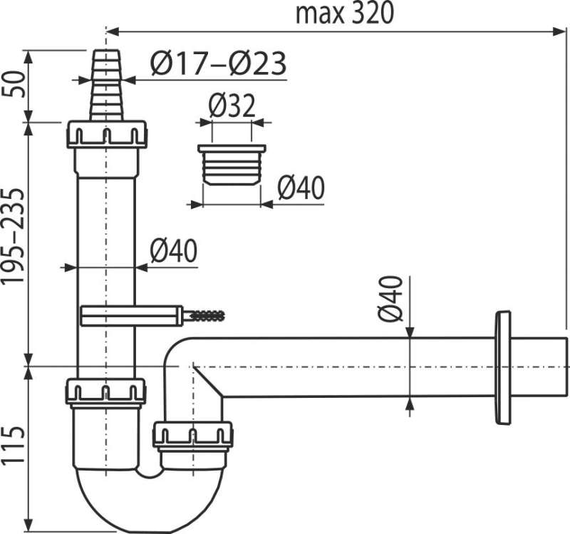 - Raccordement au tuyau d’évacuation Ø40 mm