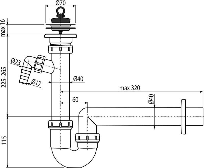 • Raccordement au tuyau d’évacuation Ø40 mm