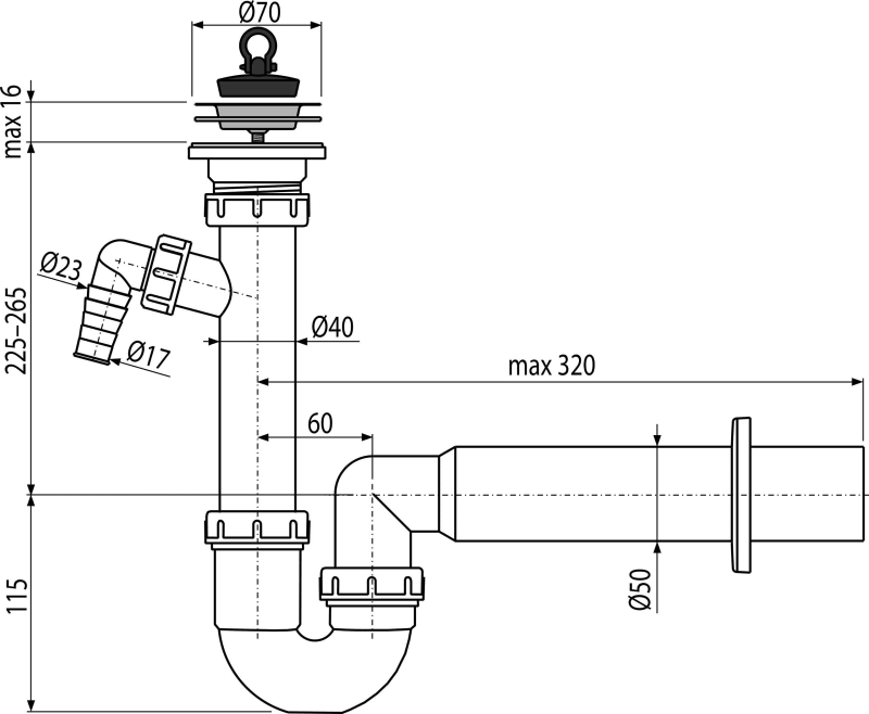 - Raccordement au tuyau d’évacuation Ø50 mm