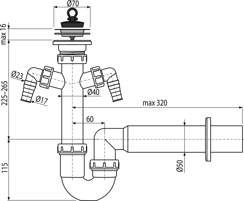 - Raccordement au tuyau d’évacuation Ø50 mm