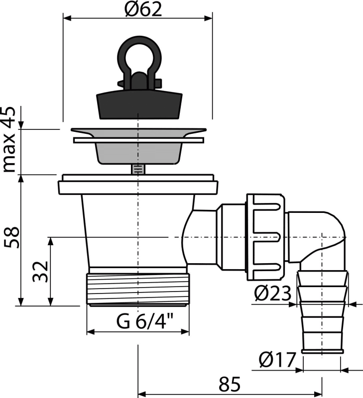 - Filetage pour raccordement au siphon de lavabo 6/4"
