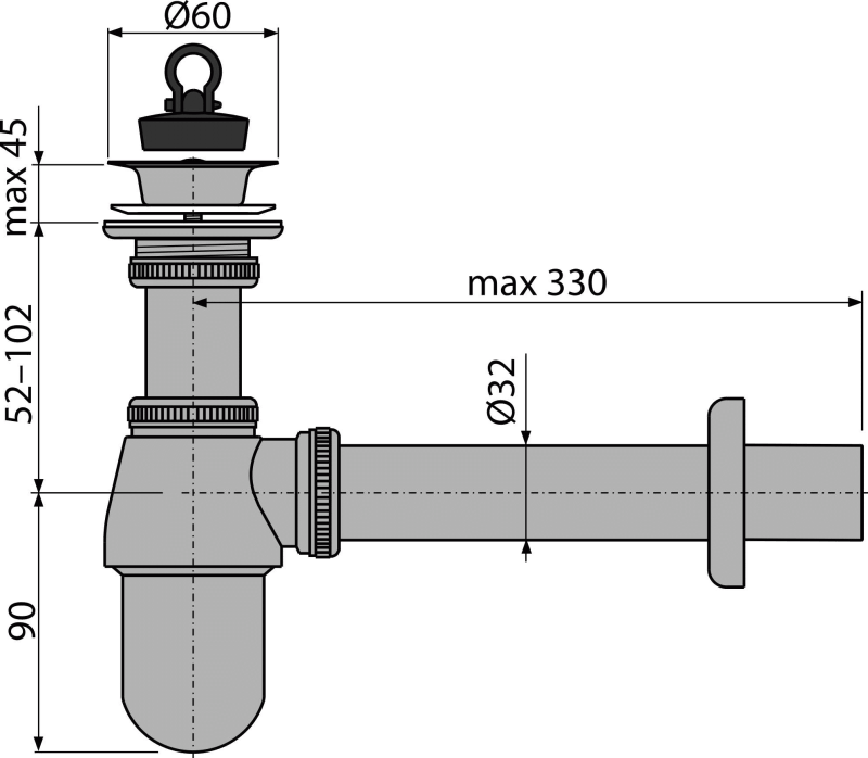 - Raccordement au tuyau d’évacuation Ø32 mm