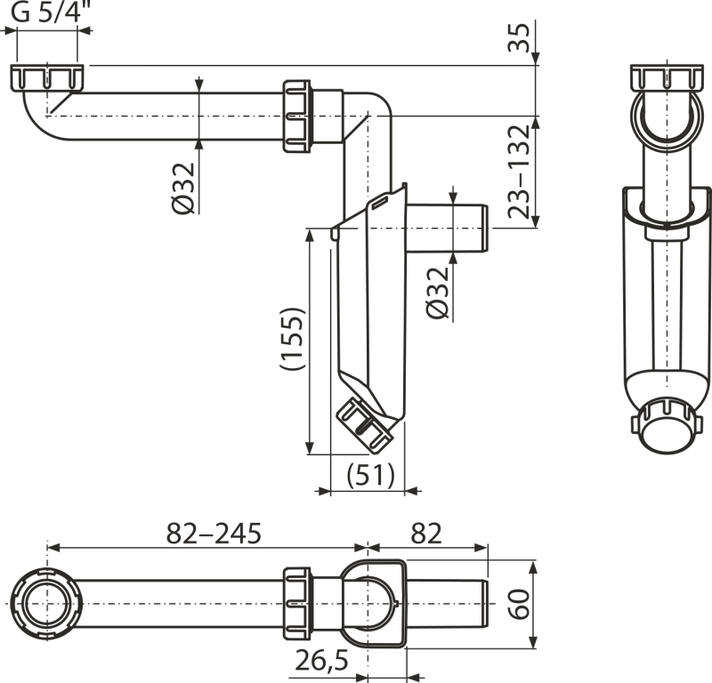 - Raccordement au tuyau d’évacuation Ø32 mm