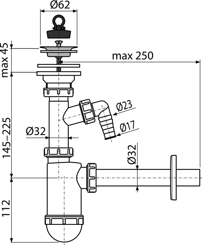 - Raccordement au tuyau d’évacuation Ø32 mm