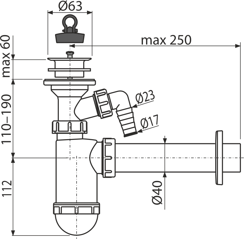 - Raccordement au tuyau d’évacuation Ø40 mm