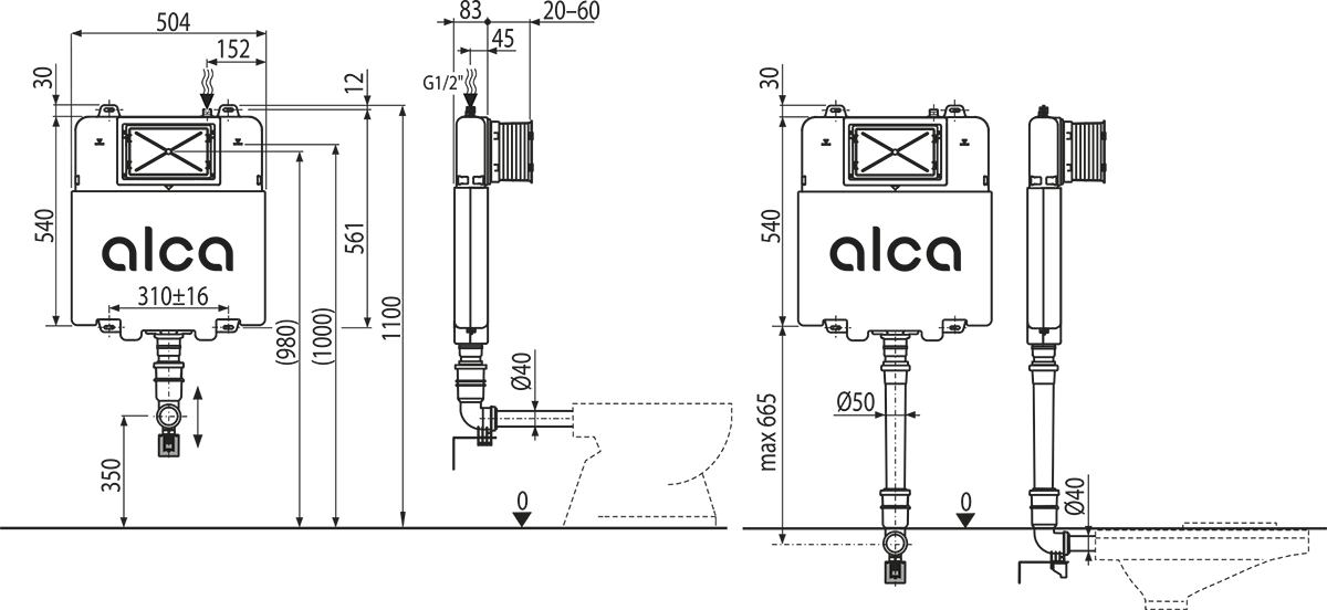 Raccordement d’eau par l’arrière ou par le haut avec trous de montageG1/2 "